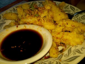 We are definitely hooked on a couple of items at Emperor’s. Their fried squid with salt and hot peppers (pictured above on left) is fantastic almost every time. Once in a great while it is chewy, but not last week – it was hot, crispy yet tender and salty. And the four of us devoured it in no time flat. I ordered the Har Kow (above on right) which are always good – flavorful, soft on the outside and filled with shrimp. I love these things and it took great restraint for me not to eat all of them myself, but I did manage to bring some home for the husband and they reheated in the microwave fairly well. We also had an order of pork dumplings, which we requested steamed but arrived fried instead. No biggie. These were primarily for the boys and they are years away from worrying about fat calories or cholesterol. And how could I send them back after the waiter told me I was “so very kind?”