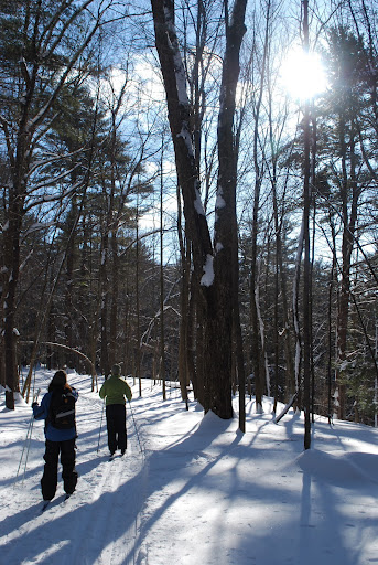 Friday afternoon, after making a vat of soup, I drove up the Northway to Saratoga.  After checking into the Hilton Garden Inn, I got into my ski clothes and headed over to Saratoga Spa State Park to check out their trails and get some calorie credits prior to the evening’s indulgence(s).