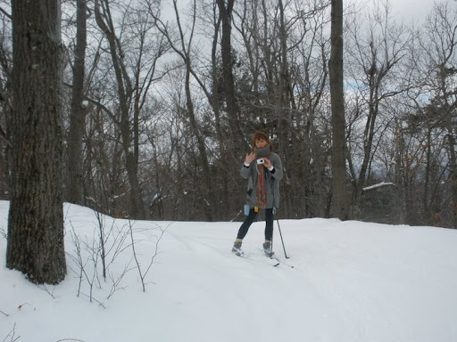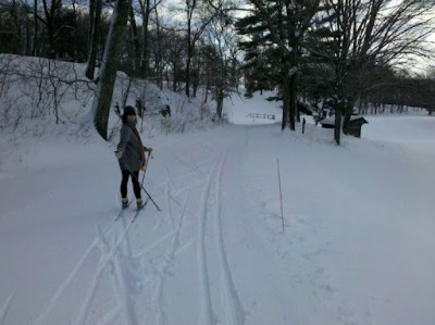 Last week I had a second opportunity to ski in the New Paltz area with an old friend. For this day, we chose the Mohonk golf course for our explorations and it was beautiful! The trails were nicely groomed and marked and we were nearly alone as we shussed through the woods. One of the first challenges we encountered was the hill below – yikes! It was a bit on the icy side and more than a tad scary looking from the top, so we elected to ski down the more subtle incline and climb up the severe hill. Which we did repeatedly – for fun. Really. I’m heading down there again in 2 weeks with another friend as part of an organized trip. Very excited to actually eat at the Mohonk Mountain house instead of just gaze wistfully at that beautiful Camelot-like building.