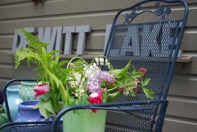 Thoughtfully placed artifacts, both inanimate and organic, were scattered around the walking path creating a sense of delight to the discoverer. The pervasive feeling was absolute peacefulness and I sincerely hope Gregory opens the gates to his property for me on additional occasion because it is obviously the type of place where the quiet, attuned observer could contentedly watch the earth evolve for days and days. The lighting on this particular Sunday, changing from sunlit, blue skies, to an amber yellow, to dove gray, alone made the afternoon feel as if the sky was in competion with the new foliage for its fair share of attention. The last picture below, I believe, was the sky’s attempt to trump the earth’s offering of lilacs and dogwood blossoms. Fortunately, there was sufficient time to absorb the rainbow’s beauty while cutting armloads of lilacs to fill my house – looks like I was the winner in nature’s face-off. Spring is most certainly here – get out there, somewhere, and enjoy it.
