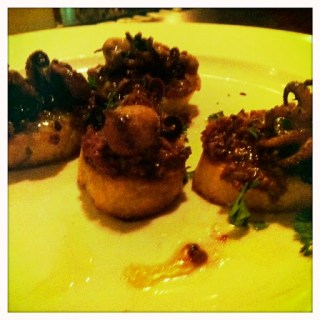 I’ve been hearing good things about New World’s new menu and the grilled baby octopus were absolutely calling my name. Look at them! I took some notes while I was eating them: “Holy smoky octopus! Delicious. Tender. Gorgeously presented like stars on little bread ovals perfectly toasted (grilled?) to perfection. Citrusy jam – yum.” Yep, that pretty much summed things up for me.