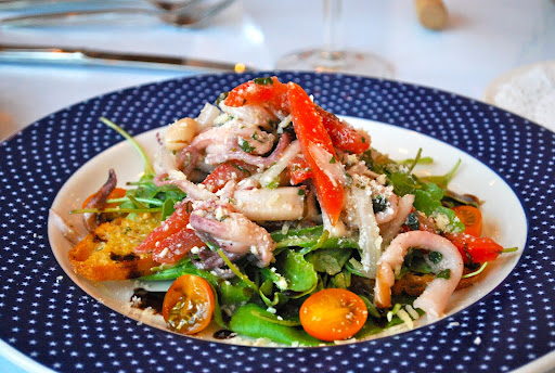 As you can see, these starters are substantial. One could certainly be more than satisfied with one or two appetizers and a salad without breaking the bank. Or dine with some friends and order a mess of stuff to share. Our table of two, however was beginning to slow down and we elected to finish our meal with a shared appetizer and a pasta. The salad choices made the decision difficult, but we went with the calamari and white bean salad and did not regret our choice. The only thing that would have improved this dish, for my tastes, would have been more beans, please, and a little less dressing. Regardless, I’m not making this at home anytime soon and I’m happy to know where I can go when the craving for a cold and satisfying plate of Italian-style love strikes me.