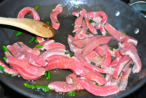 Do you ever buy those really thin cuts of beef at the grocery store? They’re done in minutes and the boys love them – and there are never any leftovers when I cook with these inexpensive pieces of beef. I think some folks may use them for steak sandwiches or something along those lines, but at my house they scream “stir-fry!” So that’s what we did…