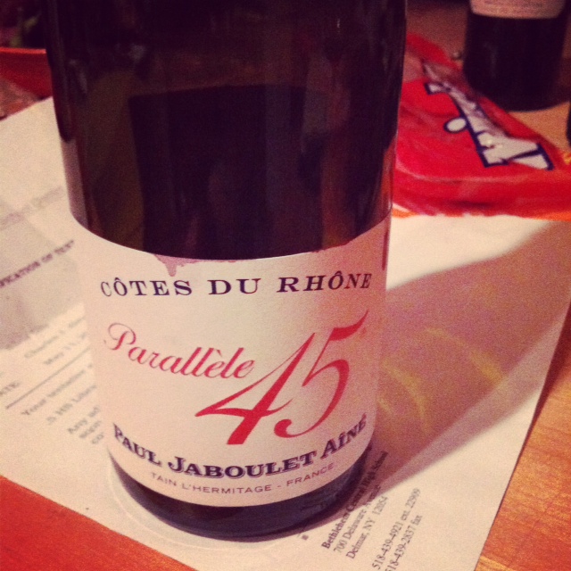 Next up was this Cote du Rhone. This was another bargain that Ken probably picked up at Capital and it was nicely balanced and managed to be smooth, yet a little peppery. Tasty. At this point we probably could have stopped, but, it was barely 9:00 and we wanted one last bottle so I closed my eyes and reached into the wine rack.