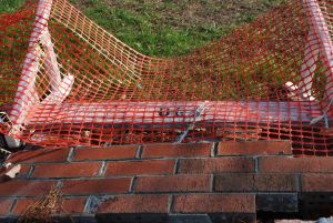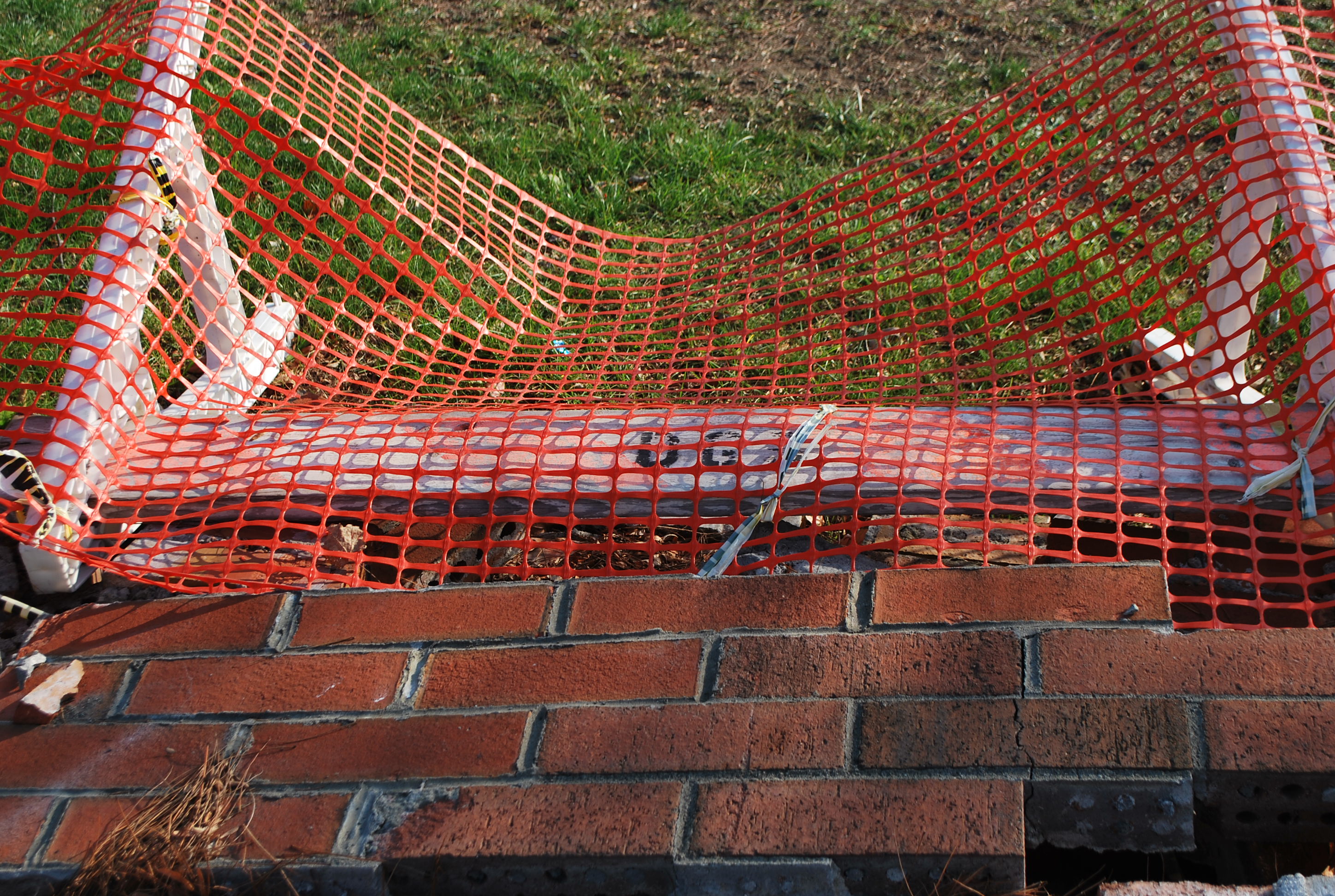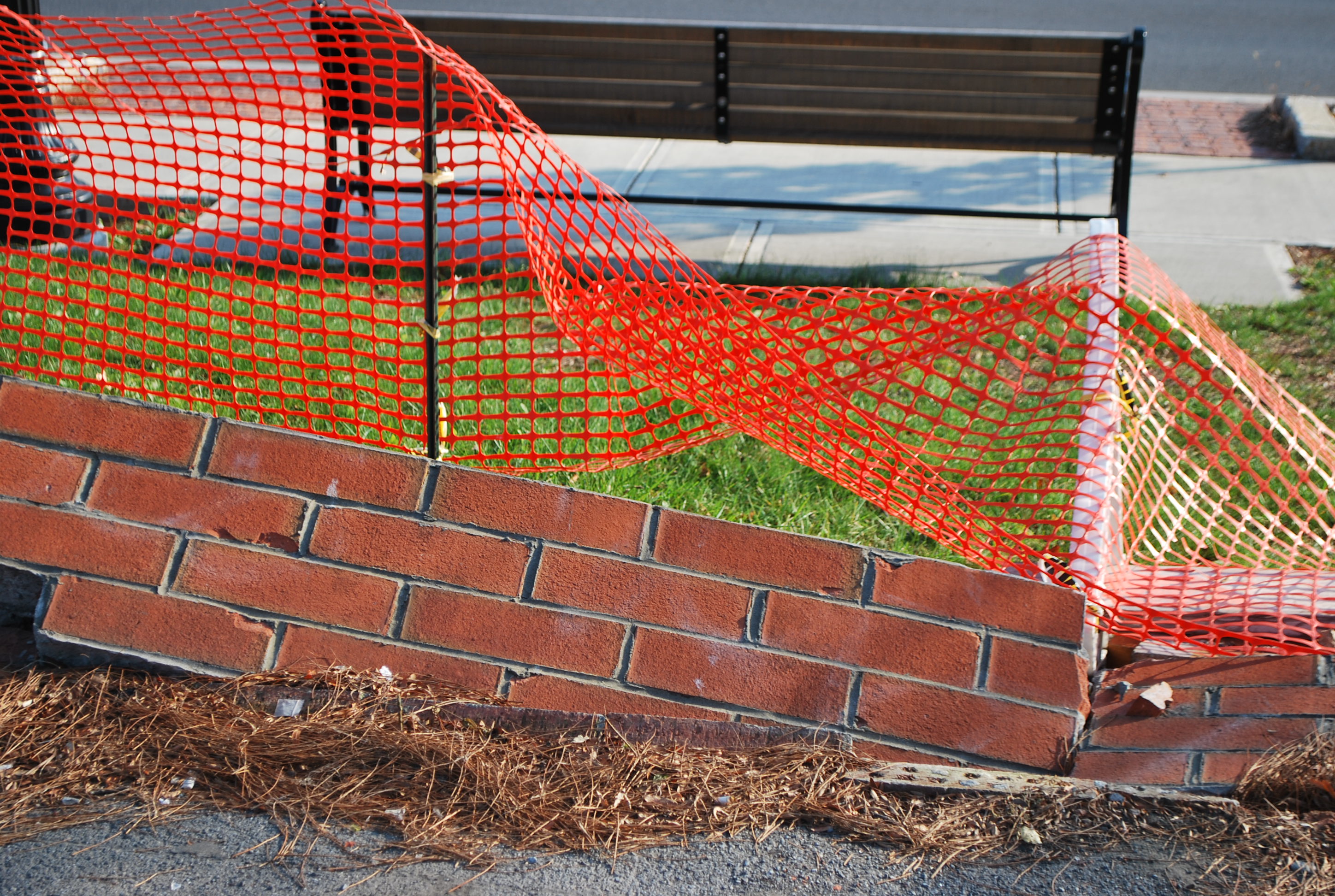 he former Friendly’s, vacant for at least the length of my youngest child’s life. This low wall seems to be speeding up in its artificial “decay” and while the situation has been noted, as evidenced by orange plastic fencing and sawhorse barrier things, there doesn’t appear to be any real course of action planned since the thing just keeps getting smaller. And uglier. What’s up with that?