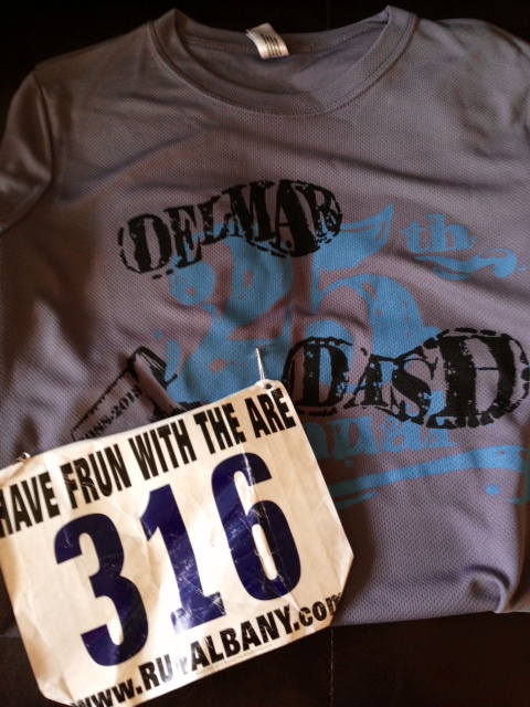 No, not my commitment to an insane schedule – the Delmar Dash 5 miler. This was my first race of the year (!) and the longest run I’ve had in nearly 3 weeks. And that’s longest run out of 2. The weather on the quick drive over, was silly. What was sunny and blue in Albany, was cloudy and spitting mixed precipitation on the other side of the Normanskill. This is not just a figurative statement. I almost turned around to select some different gear in acknowledgement of the weird weather, but decided ,optimistically, that this too would pass. It did.