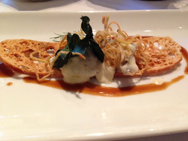 I opened with the rabbit livers appetizer served on a crostini.  This was something new for me and I only wish there had been a rabbit warren’s mound of livers to savor.  Delicious, earthy and rich – fantastic!