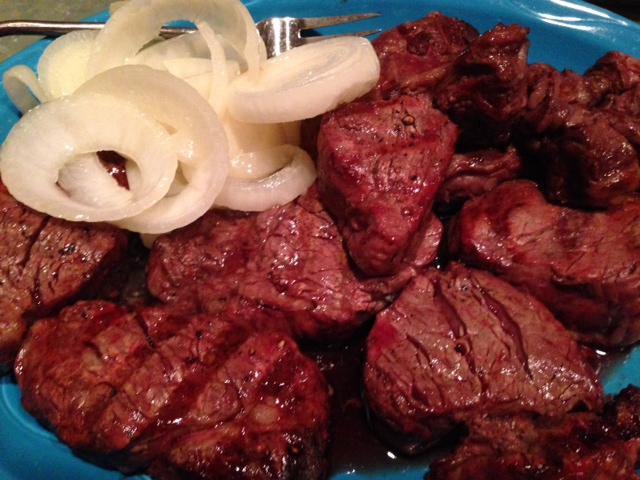 Week one, I stopped at the Slingerlands Shop Rite and cruised their meat aisles. There’s something about their displays or the lighting that makes everything look really good to me and the whole tenderloins caught my eye. I initially didn’t realize that the price on the package didn’t reflect the sale price of $4.99 a pound. Once I did the math, I decided to grab one and have it sliced into 1″ filets.