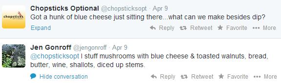 This week’s bag included some beautiful Portobello mushrooms and the timing of this exchange on Twitter could not have been more perfect: