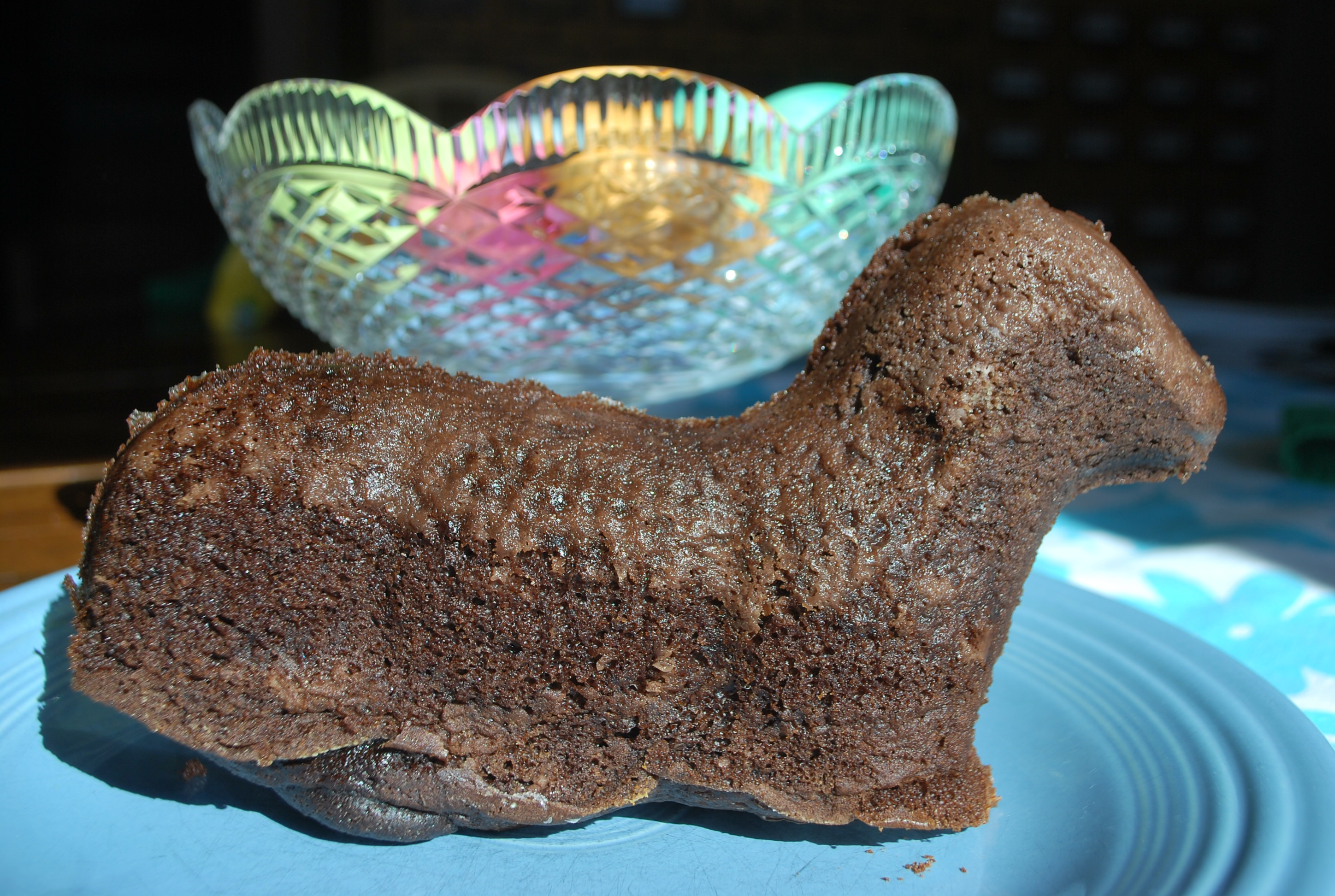 This morning, I mastered the lamb cake mold my family had mailed from Germany a few weeks back. It took three attempts to nail it. The first try was a disaster – the pan fell over in the (newly cleaned) oven making an impressive mess as the batter flowed into the most impossible to clean crevices. Take two involved an unfortunate premature slide of the cake from the perfectly buttered and floured mold as the poor lamb lost its head. Literally. Toothpicks put things back in place, but I decided to give it one final shot this morning and I found success.