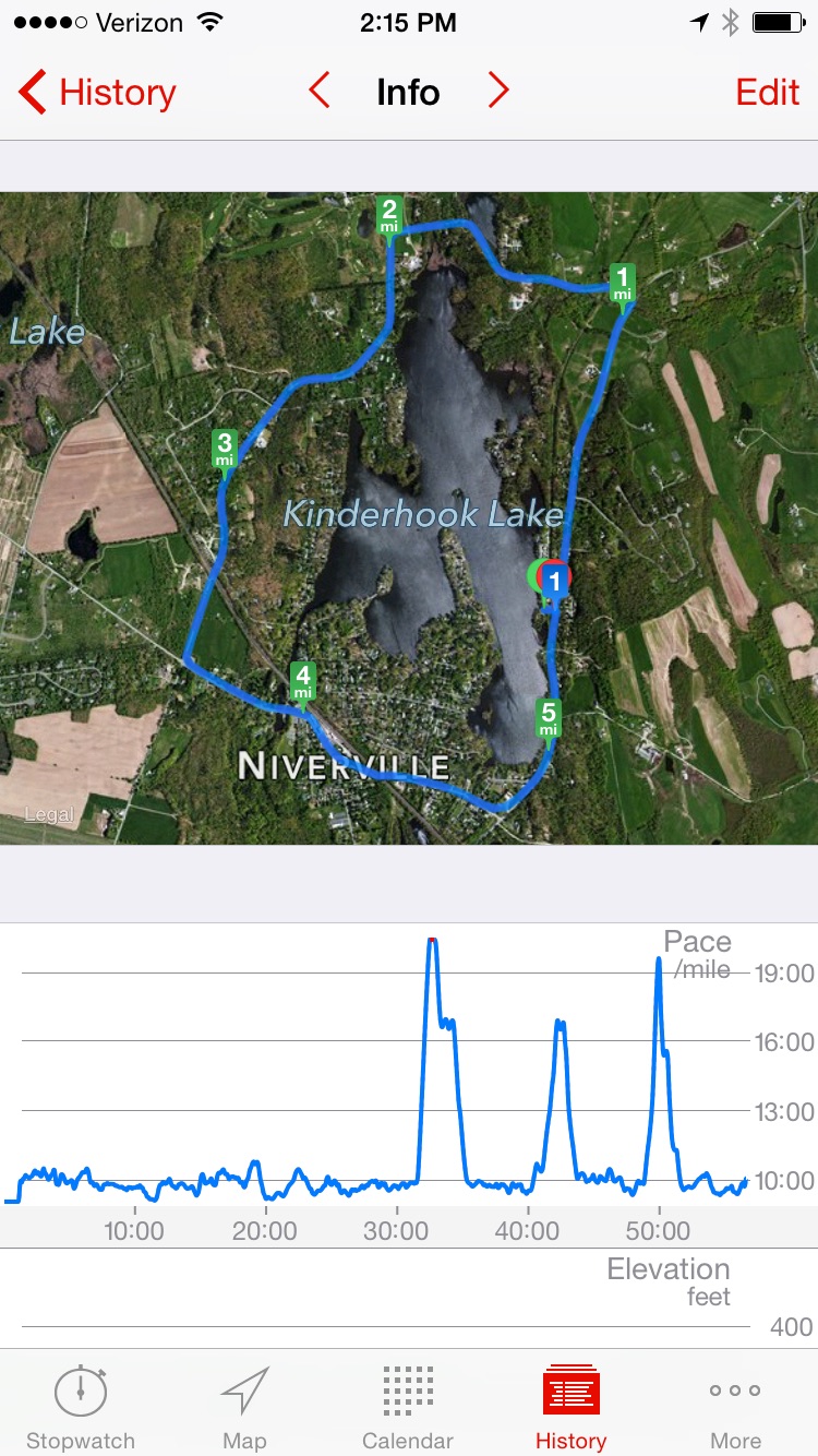 Pulling into a stranger’s driveway is kind of an odd experience, but the host of the event was friendly and chill. Guess what? Turns out she is also a librarian! Pretty cool, right? She actually didn’t make the run due to her participation the previous day in a trail half, but there were 6 or 7 other folks who laced up and took a counterclockwise lap around Kinderhook Lake. I originally set off on my own, but somewhere around my third mile I hooked up with three other runners and we finished up together.