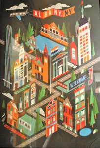 This print, though, can cure any melancholia I might be feeling. I won it at Champagne on the Park’s silent auction and it is the last thing I see when I walk out of my house. I don’t knows how about art, but it feels kind of deco and the colors and depictions of Albany’s landmarks are joyful. Lee Dixon, the artist and graphic designer is a super nice guy and I’ve often seen his works for sale at local art events. He’s also done some awesome postcards that I’ve seen at Elissa Halloran’s shop on Lark Street.