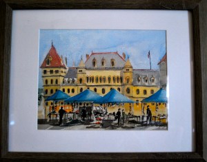 When I sold Lark + Lily, Ritvik came collect his work and I decided to purchase one. I selected the image below because I loved his depiction of the Capitol with the addition of an imagined farmer’s market on the west lawn. The lines are simple, the palette pleasing and I knew it would make a wonderful addition to my collection.