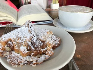 How do you follow a terrific meal in Saratoga’s finest restaurant? The answer (for me) was an overnight stay followed by a few hours enjoying some of Saratoga’s other assets. First stop – Mrs. London’s for my usual almond croissant and glorious bowl of latte.