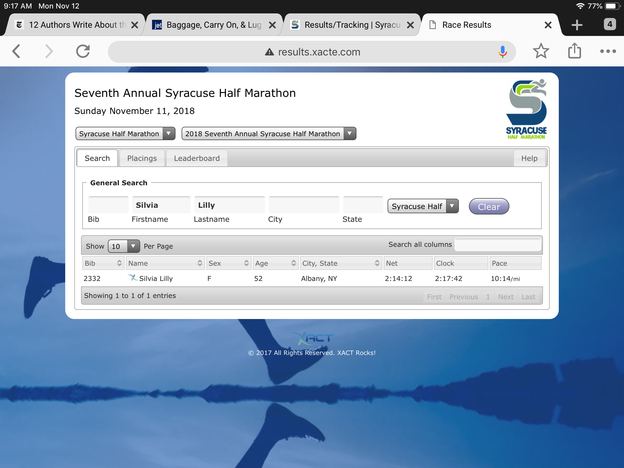 2 thoughts on “Syracuse Half Marathon – 11/11/18