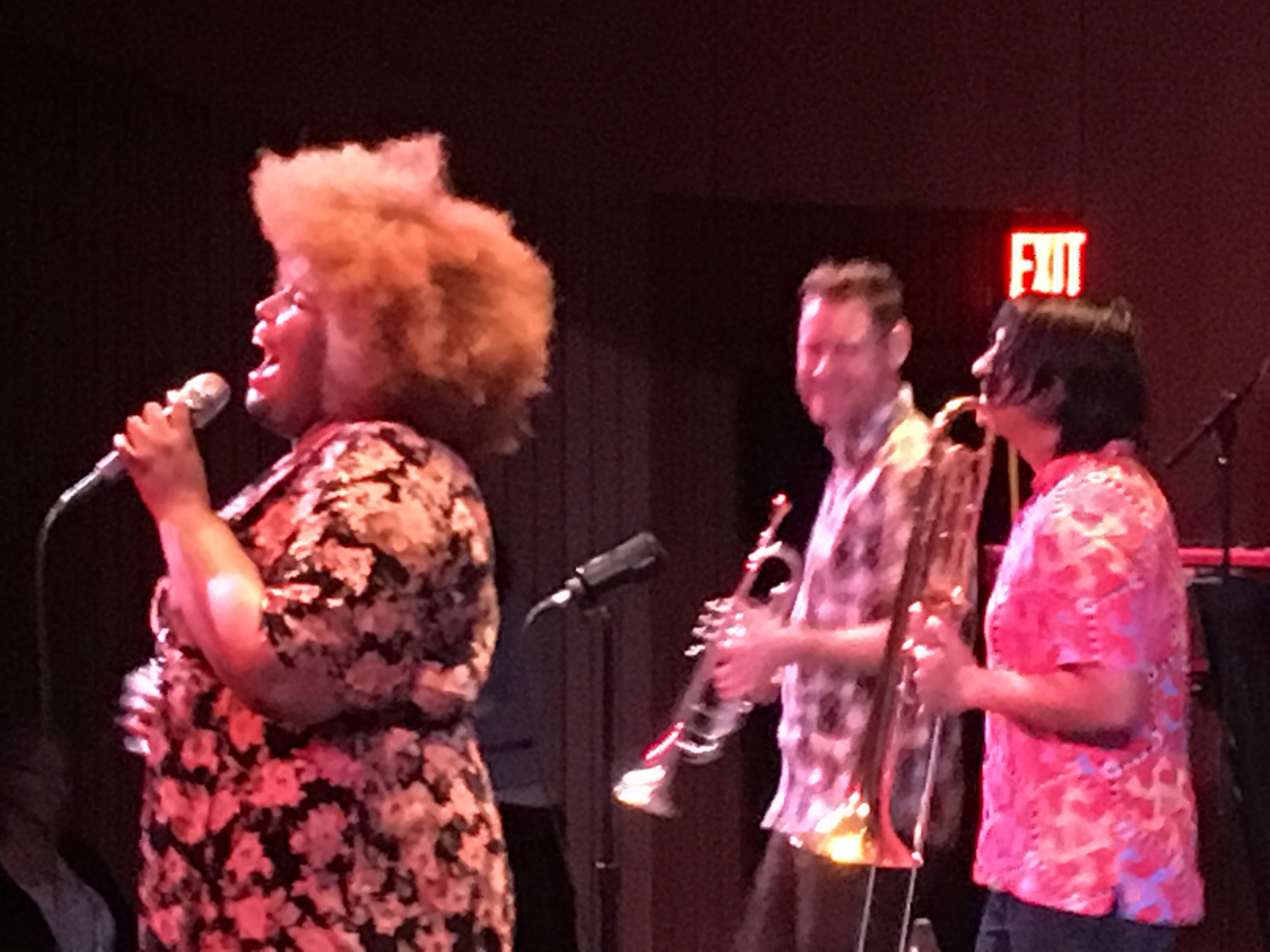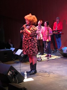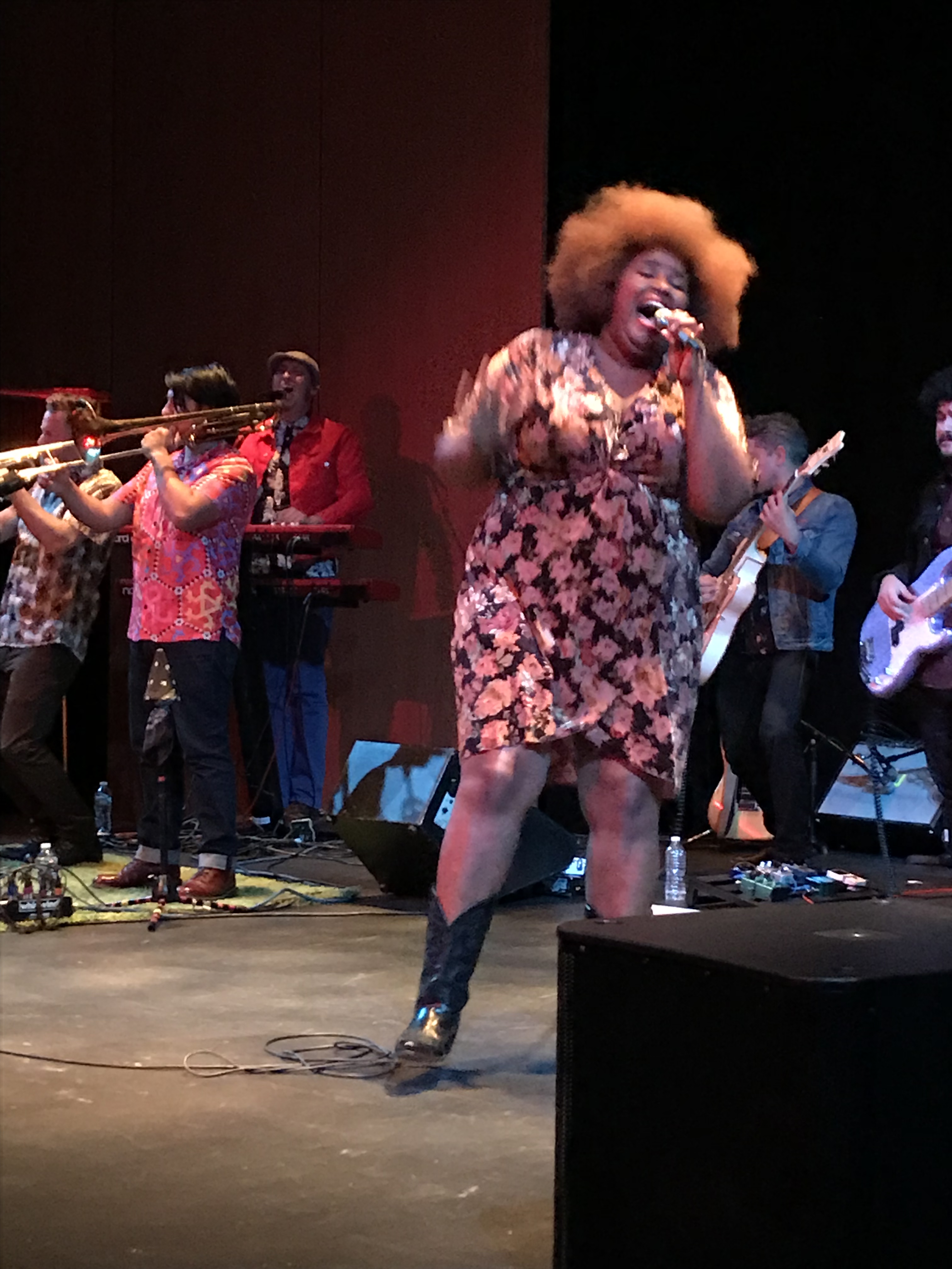 A big part of the enjoyable evening was a concert at The Egg. A band from Houston, called The Suffers, were playing and we had tickets for the 7:30 show. I had heard their music on WEXT 97.7 and liked their sound, but we weren’t sure what to expect not being overly familiar with the band.* Promptly at 7:30, the 8 member band walked onto the stage in the Egg’s smaller theater, and immediately heated up the underpopulated room.