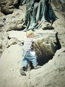 - He received a classic toy for his second birthday – one of those plastic lawn mowers that “pops” as you push it along. He was playing outside with it with my mother-in-law shortly after receiving it and somehow she lost track of him. We located him about a block away from the house, completely oblivious to our collective panic.