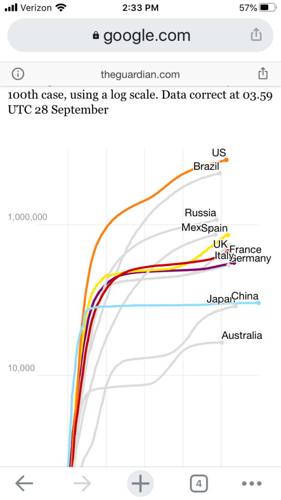 Do you remember the last presidential election? The campaign promises about making our country great again, how we would be taking care of our own population instead of acting as the world’s safety net and would provide a new and better health plan to our citizens. Have you honestly seen any of that occur? The great country we were promised is in reality a poorly managed, corrupt and morally bankrupt dumpster fire. Take the president’s “response” to scientific data about the worst global pandemic in a century – we have more Covid deaths, by far, than any other country in the world. Even those “shit hole“ ones.