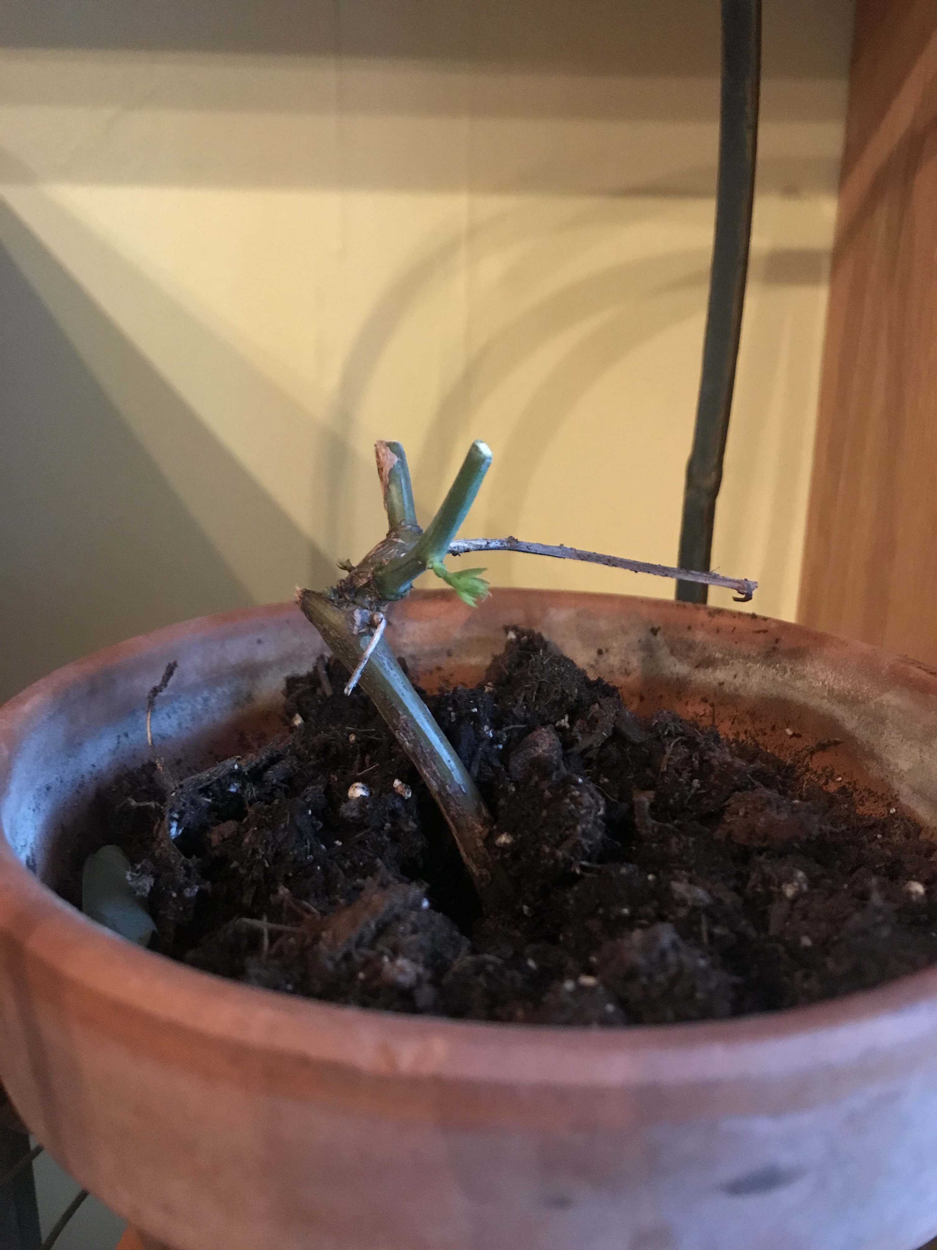 Something happened recently to this plant that could inspire disappointment, if I indulged that kind of negativity. I noticed that the soil level was a little low and added a couple of scoops of potting soil to the pot, pleased with my observation and follow through. The next day, I even remembered to add a little water to the plant as I checked on my indoor garden in my usual well intentioned, but lackadaisical, way.