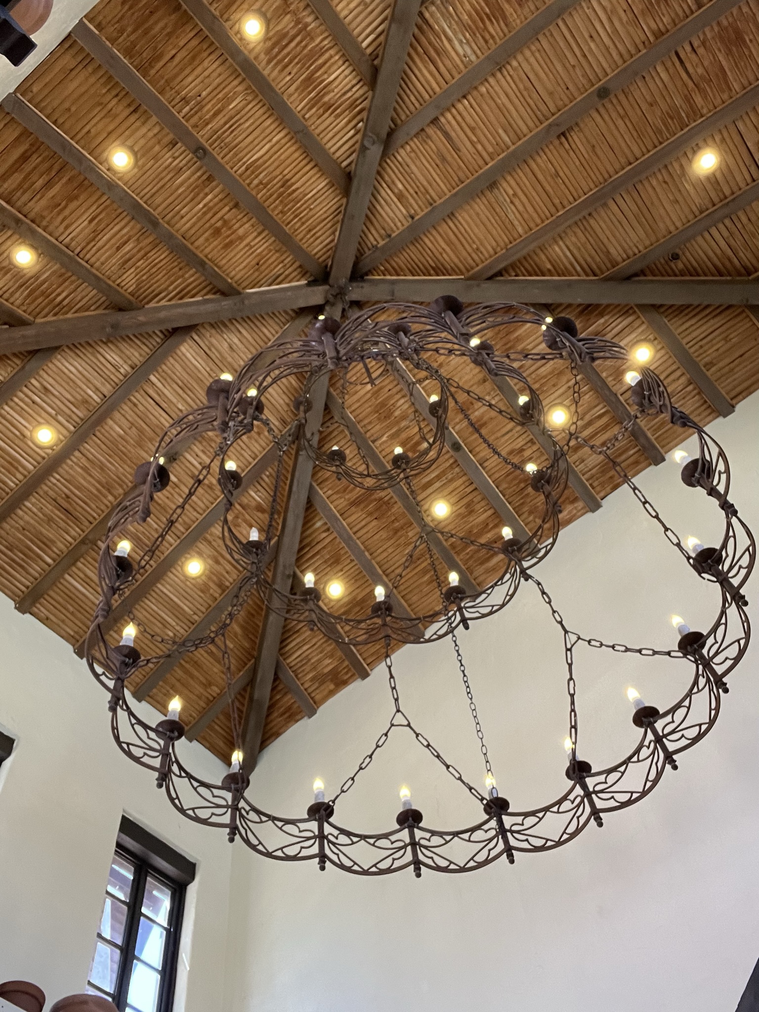 Freshened up, I returned to the hostess station to wait for my table to be ready, marveling at the ornate iron and wooden light fixture/sculpture suspended from the high ceiling. I decided to make use of the nearby bench to take a load off after approximately 5 hours nonstop on my feet.