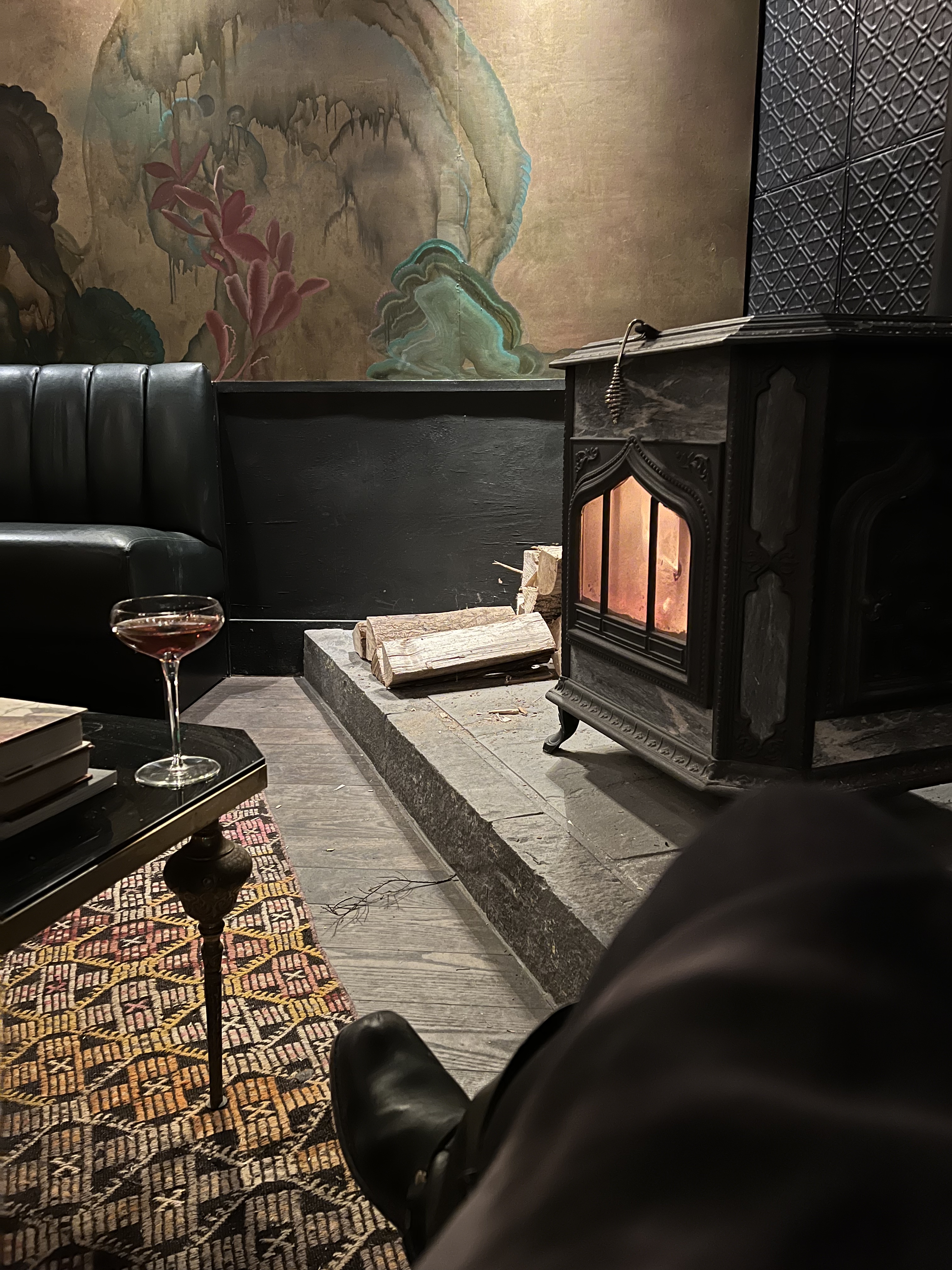 After my bath, complete with bubbles, I put on a pretty dress and drove myself to The Aviary for the best Manhattan mixed by my favorite and beloved bartender. That quick hour, equally divided into time at the gorgeous cocktail bar and in front of the cozy fireplace, was the perfect transition between chores and indulgence and I relished each moment. I got back home at about 7:30, with my sons +1, expected by 8:00. I set the table for our pre-dinner antipasto and fired up the oven to roast the lamb. It all was incredibly simple.