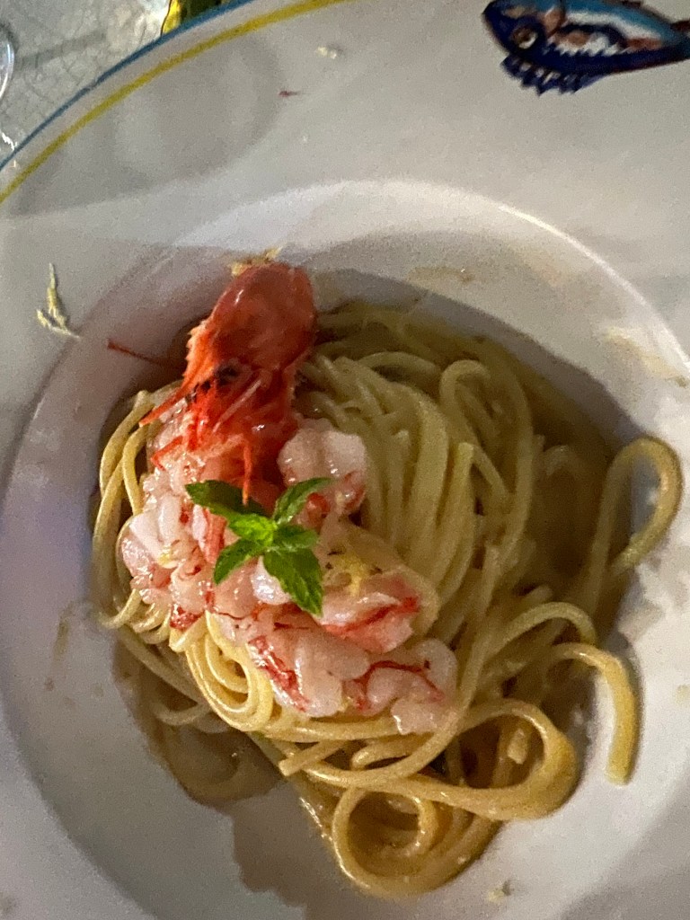 Perhaps there’s an Ischian saying about “when the sun goes down, the music goes up,” because that’s exactly what happened. The cigarette smoking, waitress dj began playing an eclectic selection of songs at a volume that necessitated leaning close to one another for conversation. Obviously not a problem, just rather unexpected.
