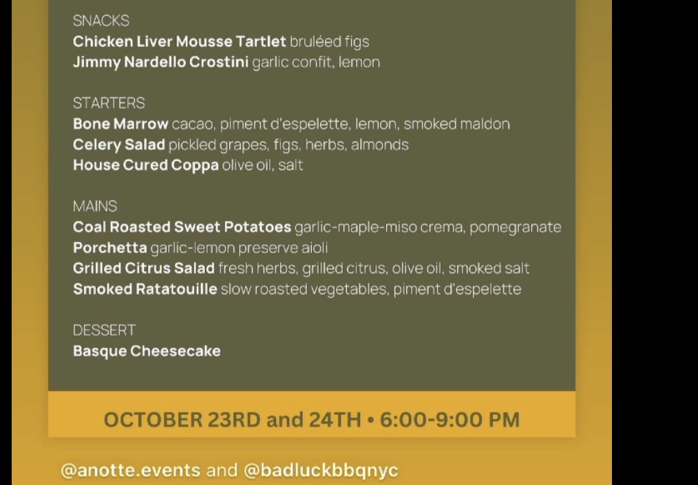 Last month I got lucky when someone I follow on Instagram featured information about a Supper Club event being held in Coxsackie on a Monday night. I quickly clicked through and reserved two seats for my beau and me for 10/23, not even caring that the menu details weren’t available at the time of booking. It didn’t matter – we were going somewhere fun on a Monday night!