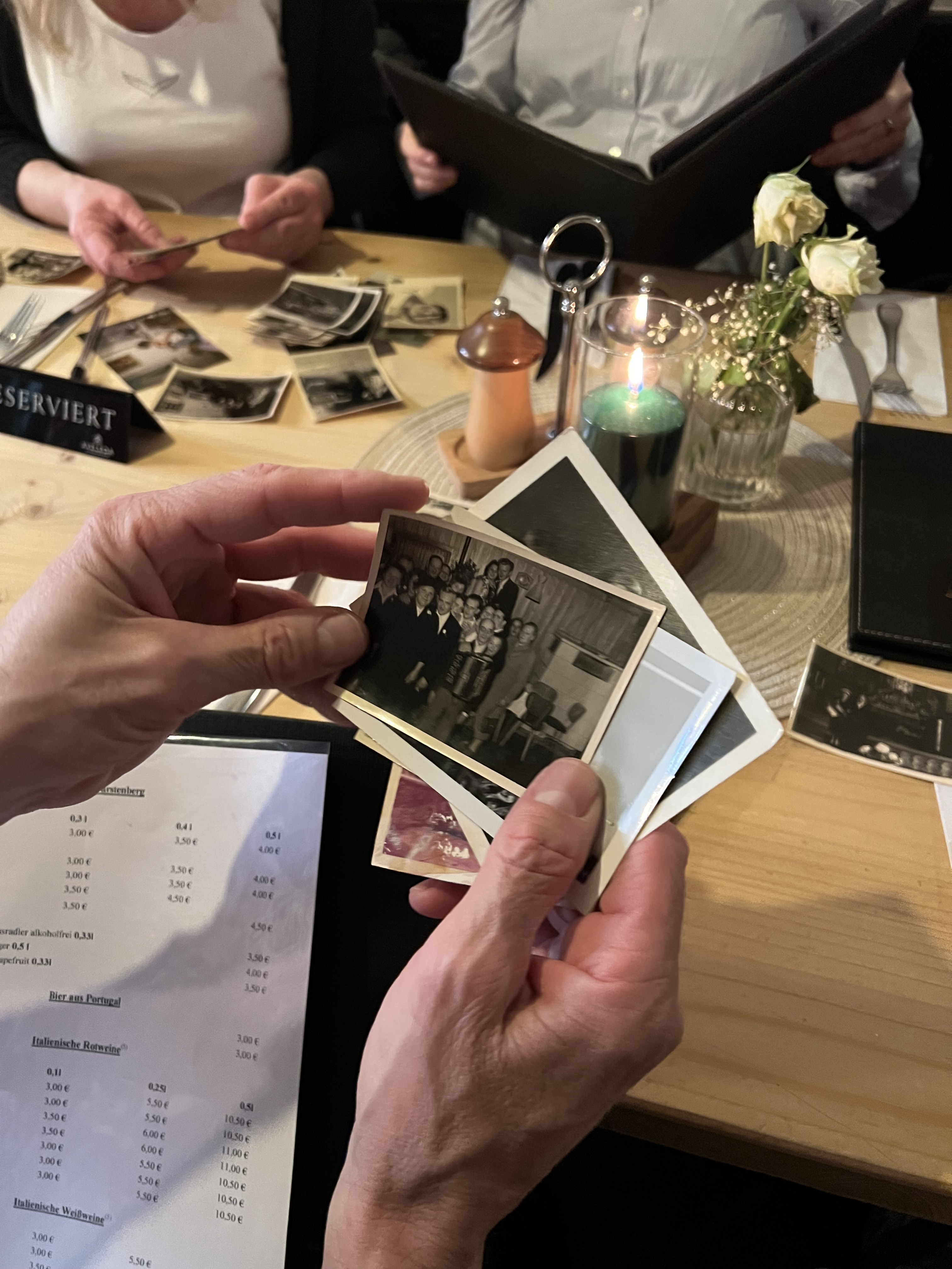 Bringing those photos along was one of the best ideas I’ve ever had. Watching my family carefully looking at pictures and then having them explain who was featured or what the occasion had been, was a wonderful experience. My Aunt Klara (left photo) was at least as thrilled as I was when she saw the picture in my hands. It captured her as a young mother with one of her daughters many years ago. Another picture of my Uncle Gerhard with his wife and firstborn child, revealed that they just might have been a little bit hippy-ish. It was great.