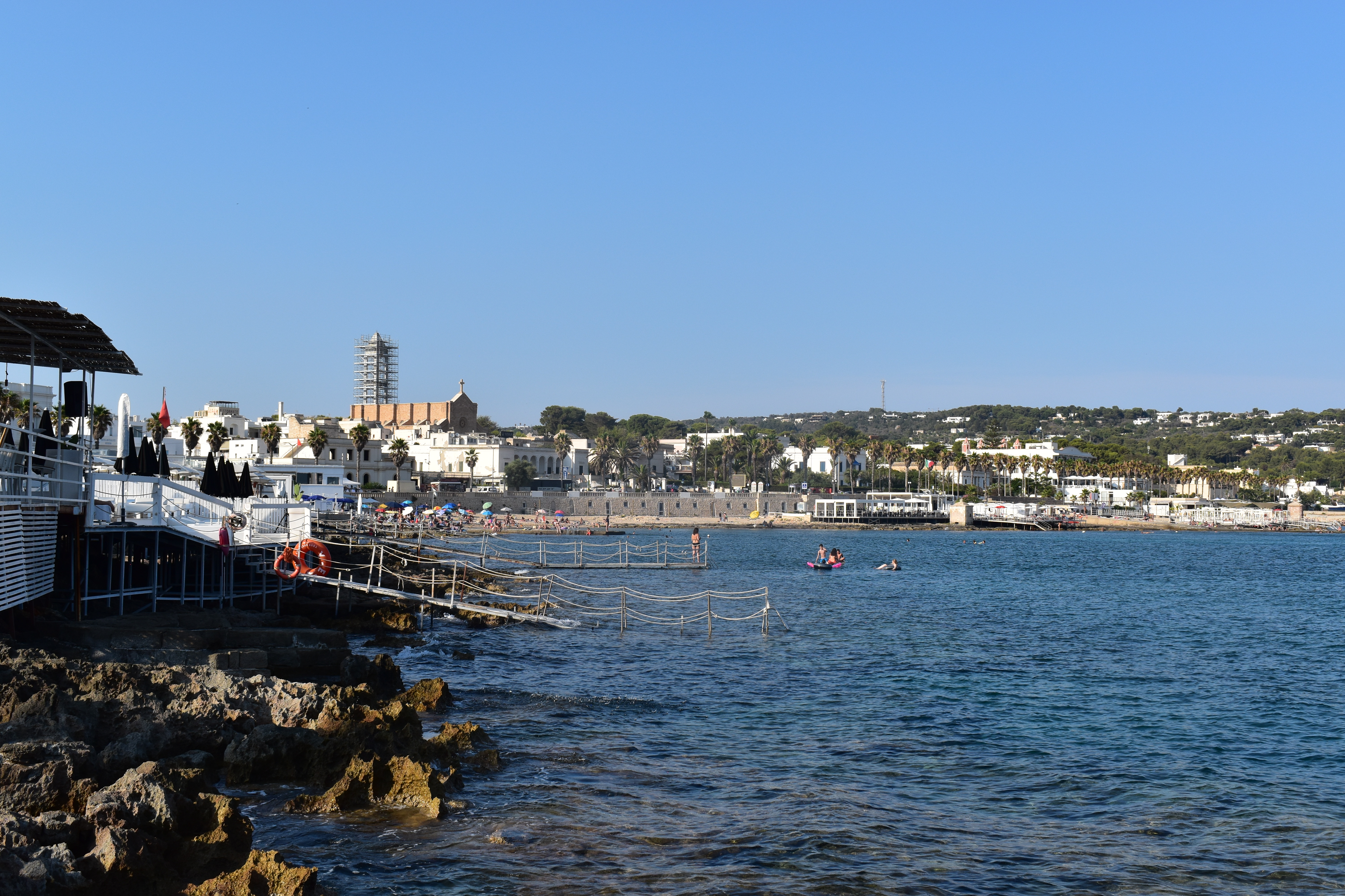 The temperature of the water was a little cooler than it had been in Polignano and I welcomed the refreshment it provided. The area where we got into the water was rocky, but the Lido had constructed a walkway which led directly into the water without having to tread on what looked to be sharp rocks.