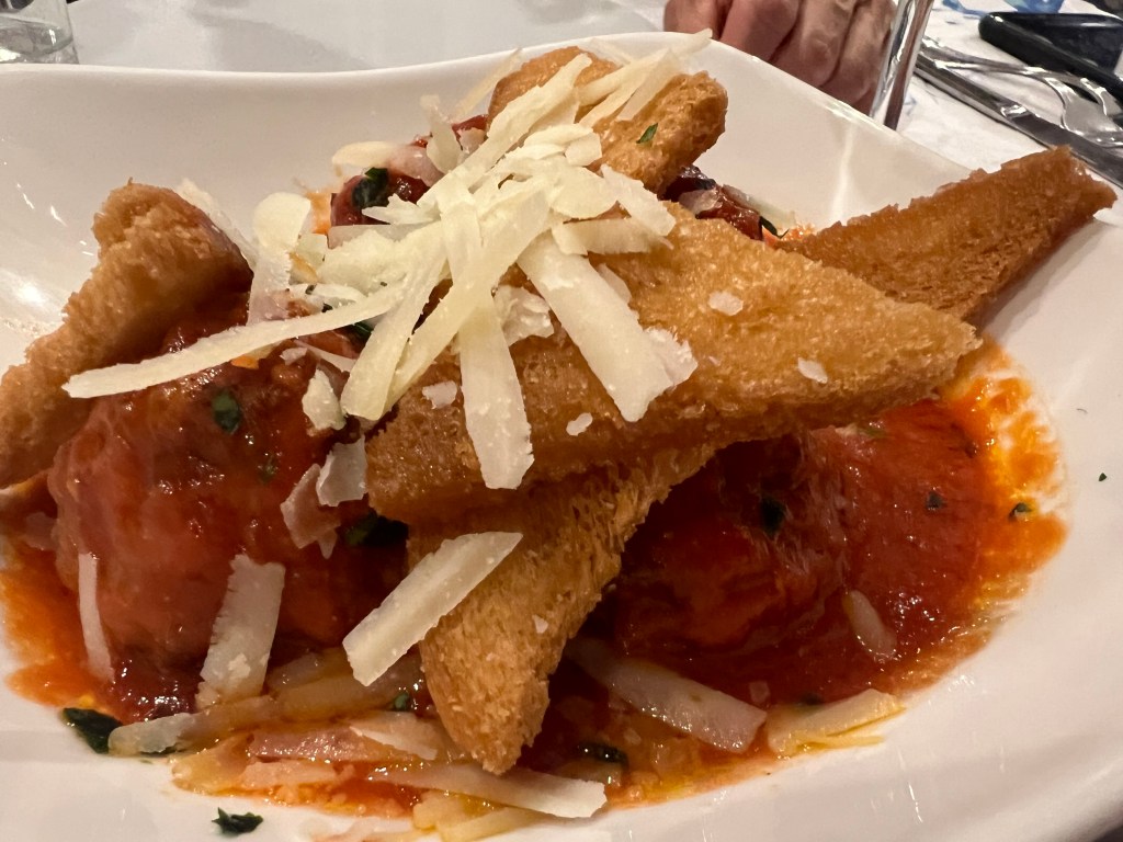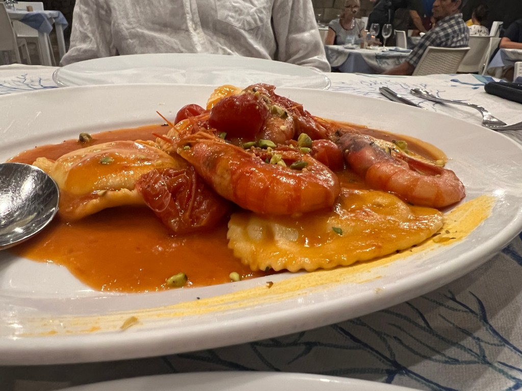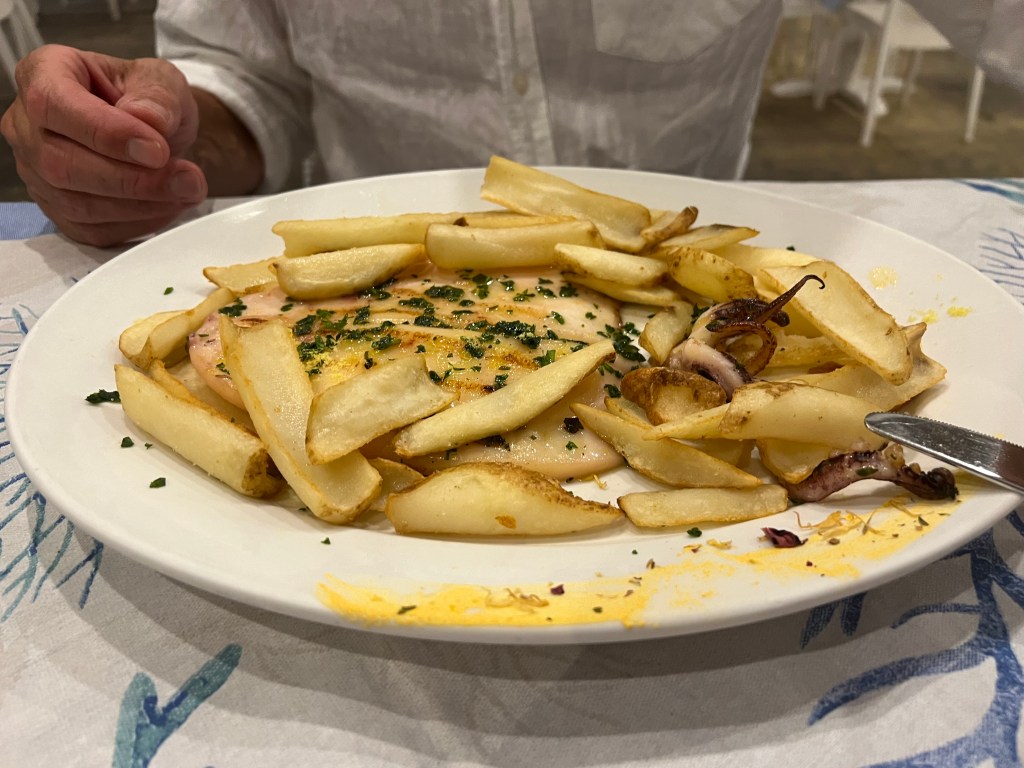 After showering and relaxing for a while we walked to dinner at a nearby restaurant, Loquita. It was close to 9:00 by this point and the walk was delightful with warm air and a delicious and steady breeze. Speaking of delicious, our meal was really good. We were seated under the bridge we had driven over multiple times when we were seeking our Airbnb and the view was lovely. Dinner was a leisurely affair with 3 courses and the perfect bottle of vino bianco, a Puglian Falanghina.