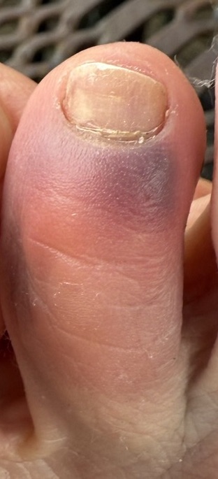 Returning to the car along the wooded path, things took a negative turn when I stubbed a toe on my left foot. Again, the initial pain made me gasp. Son of a bitch. Did I really just smash another toe?