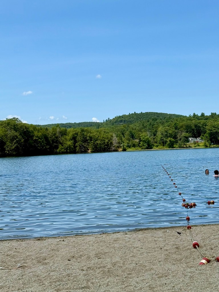 By the middle of the week, the heat was bringing me down and I just needed to slip into the water somewhere. After a quick search, I discovered Ashfield Lake, a public beach about 25 minutes northwest of Northampton. Parking was readily available when I arrived midday and finding a spot on the sandy beach under the shade of a small oak tree, was easy. I spread out my blanket, marveling at the wonder of an oak tree on a beach, and quite happily lazed for 3 hours, interrupting my relaxation with a couple of slow crawl swims. It was delightful, with the added bonus of a bald eagle taking a lap through the blue sky above the lake. I would go back there anytime.