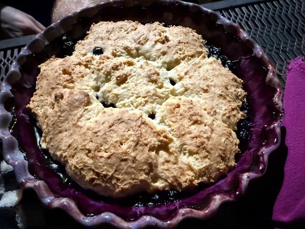 As you can see, my “biscuit” blobs baked together making a top crust of sorts, but that did not detract from the flavor whatsoever. The pastry was light, baked through and provided the ideal support for scoops of Stewie’s Philly Vanilly. The recipe says that it serves 4-6 and we were 6, including my 3 sons who are, shall we say, good eaters. Despite their best efforts, we had one extra serving which was sent home with one of the lucky Lilly lads.