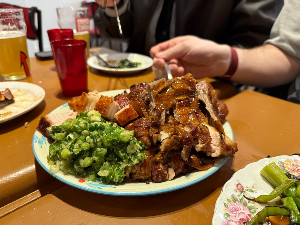 Dinner was Chinese food, something we particularly enjoy indulging in on holidays. The place we tried, Dobe & Andy, on this trip was sorely lacking in ambiance, but the food was very solid and we managed to devour nearly everything we ordered. The dumplings were quite good and the platter of three meats (pork, duck and chicken) was really well prepared. We rounded out the meal with two variations on chow mein and a green vegetable and our dinner for 5 came in at less than $100. That’s a definite deal and we’d happily go back and focus on the meats and dumplings.