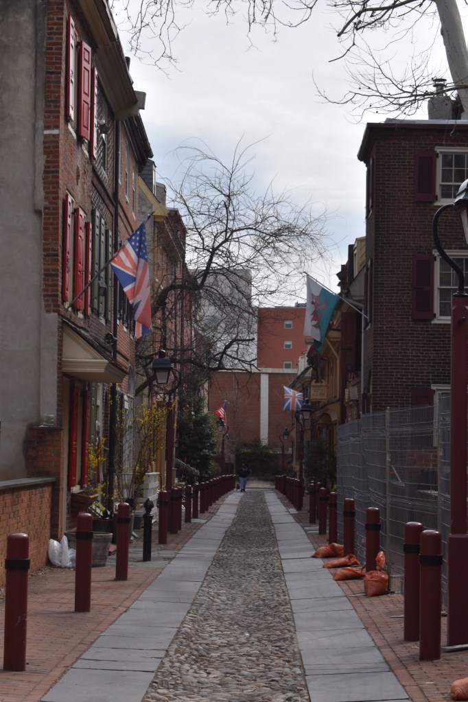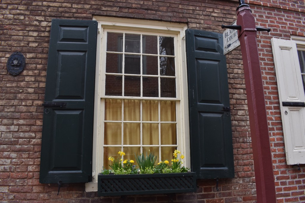 On this morning, though, we headed to the Old City neighborhood and the oldest continually occupied street in Philadelphia, Elfreth’s Alley. This small enclave embodies colonial America and we were charmed by the well maintained brick homes with spring blossoms and the sense of centuries of history surrounding us.
