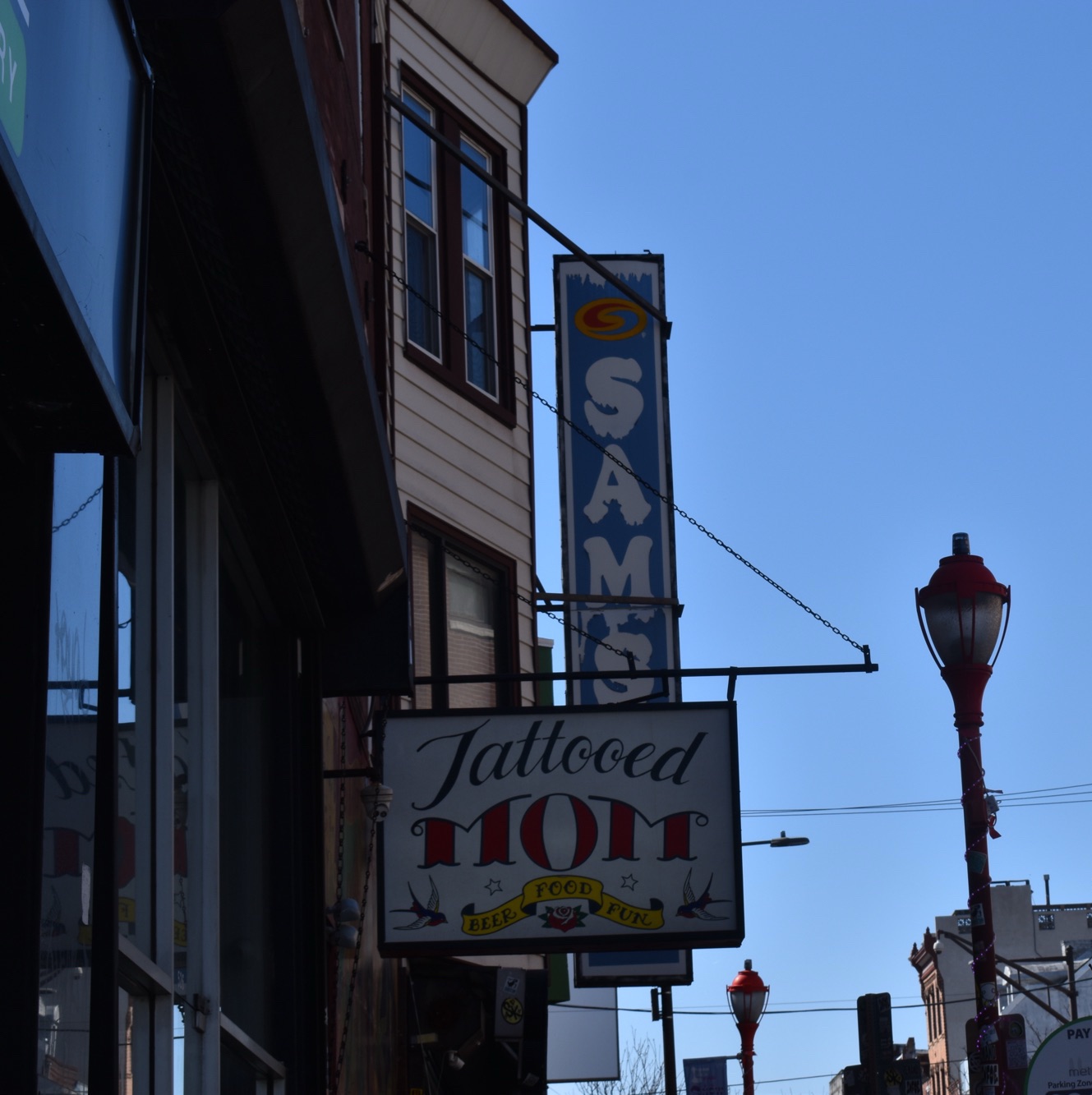 We were not exceptions to this rule and our purchases of a Ben Sherman button down and a pair of gently broken in Doc Martens were toasted at our next stop around the corner, Tattooed Mom, a funky joint with a punk vibe, colorful decor and tasty cocktails with a variety of hot tot options for on the side. Two thumbs up on this place.