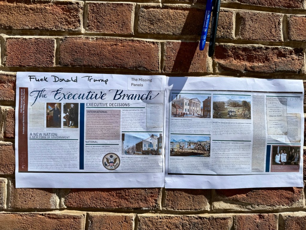 We had wandered around a bit on our first afternoon taking in some of the history. What’s left of it, that is. The Independence Hall area showed evidence of the removal of some of the panels describing the history of slave ownership in the U.S. Some of the now blank brick walls instead feature printed replicas of the removed information. Funnily enough, there were two markers hanging from string seemingly to invite viewers to add their thoughts, which I did.