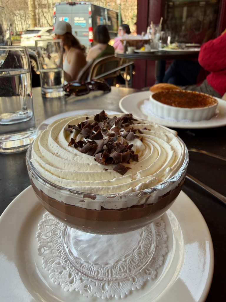 Our last stop for the trip was at a place that numerous people had recommended – Parc. We nabbed the perfect table, one which straddled indoors and outside, and provided a direct view of the aforementioned park aka Rittenhouse Square. The interior immediately reminded me of Pastis and Balthazar in NYC and I was not surprised to learn that Parc and Pastis both belong to the same restaurant group. As I’m inclined to do when visiting Pastis, I ordered a glass of Cremant and was very happy with my lunch of quiche and salad. The atmosphere and service were both designed to make guests comfortable and we settled in for an indulgent lunch that included dessert – créme brûlée for Mary and pot de crème for me. Outstanding.