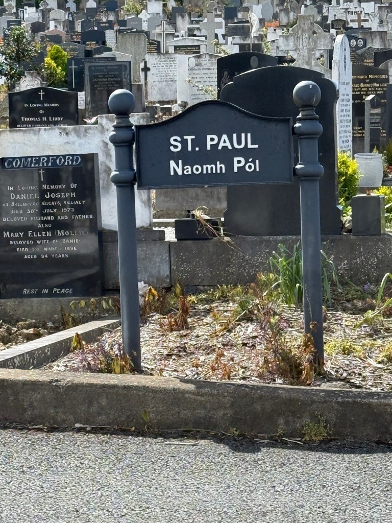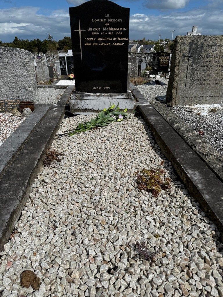 Deansgrange is a large cemetery with a hill that slopes up to a neighboring housing estate. My father’s plot is in the St. Paul section of the graveyard and sometimes I can find it right away, while on other occasions I wander a bit before locating it.